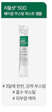 - 리들샷 500: 시카 리들 함량 ⬆⬆⬆️, 자극 ⬆⬆⬆️ → 주 2회 사용! (가장 강력!)