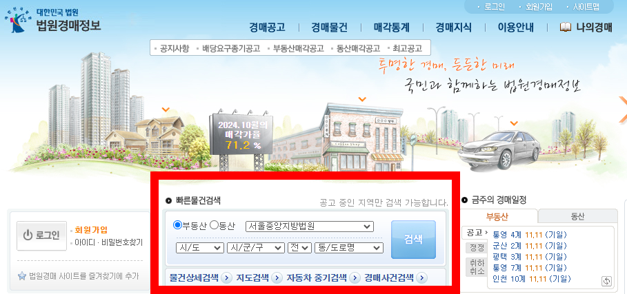 이 사이트를 통해 부동산부터 동산까지 다양한 경매 물건을 쉽게 확인할 수 있어요.