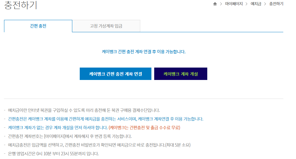 - 예치금 충전은 카드가 아닌 계좌 기반이므로 미리 준비 필수