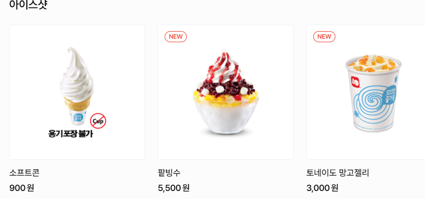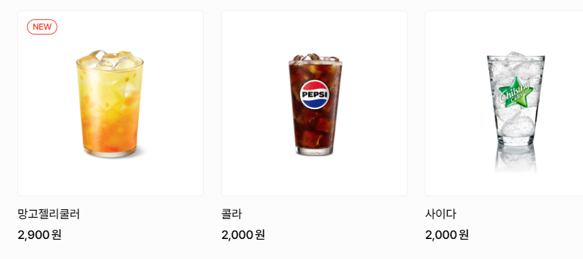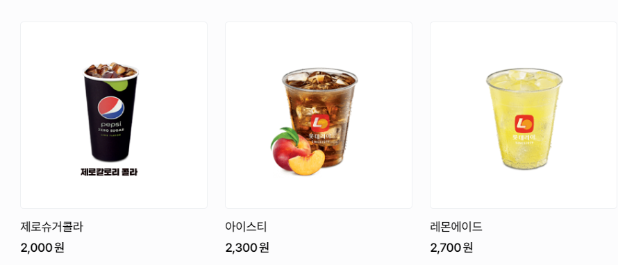 4. 롯데리아 메뉴가격 - 음료, 아이스샷
