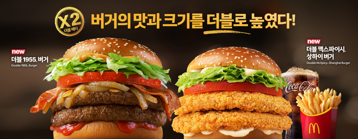 - 두 장의 100% 순쇠고기 패티 + 특제소스 조합