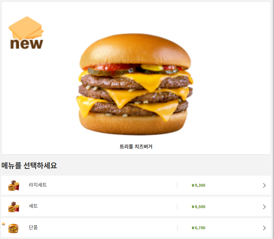 - 치즈버거 단품: 2,800원 → 3,000원