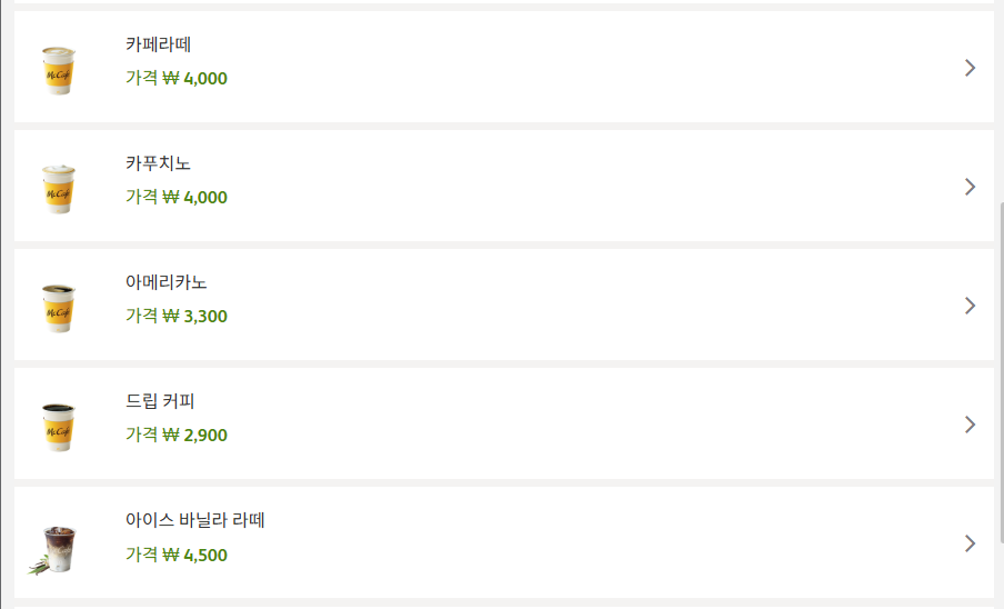 2025년 맥도날드 메뉴 가격