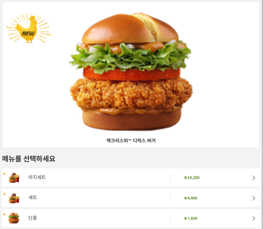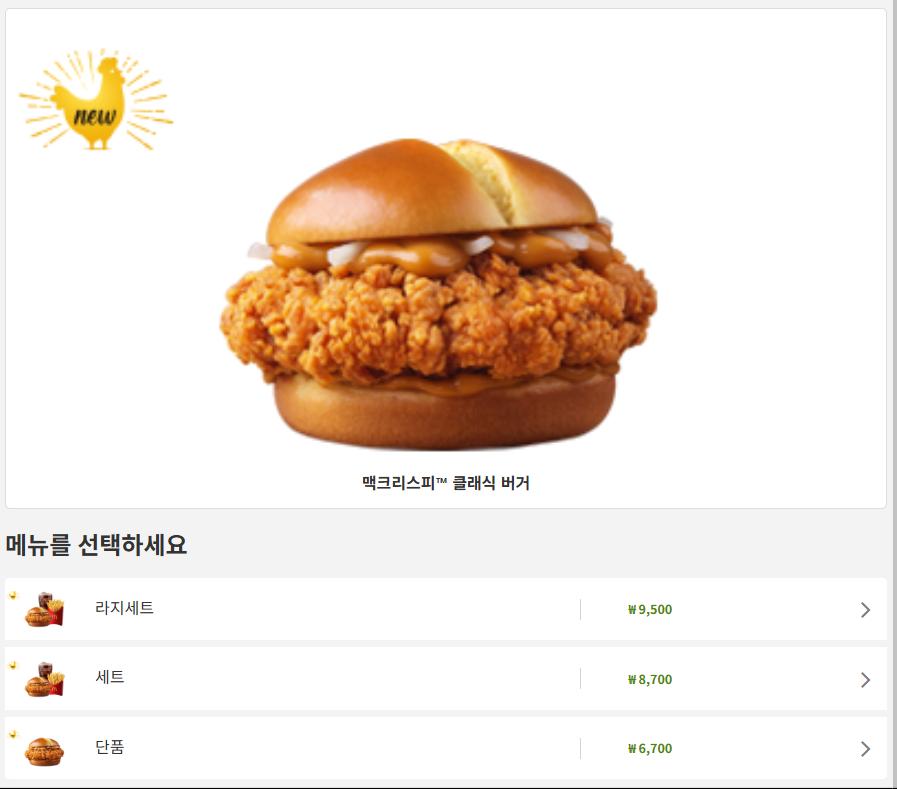 현재 기준으로 맥런치 시간대의 빅맥 세트(6,300원)와 맥크리스피 클래식 버거 단품이 가장 만족도가 높습니다. 가격 대비 맛, 포만감, 만족도 모두 우수한 메뉴입니다.