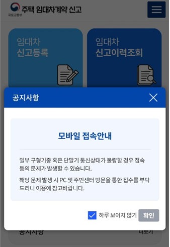 주택임대차계약 신고 모바일 신청