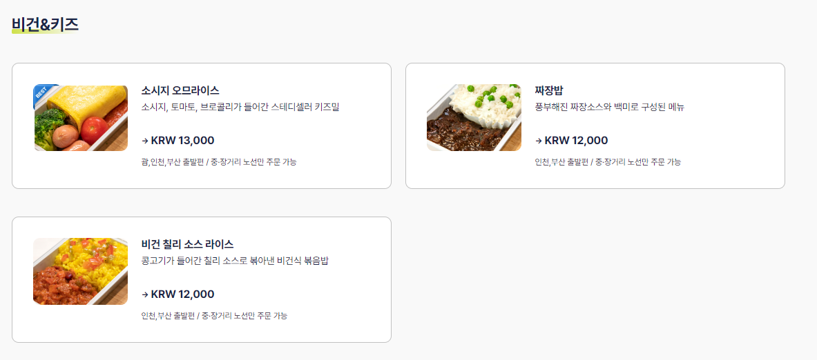 ■ 단거니 노선은 사전 주문 기내식 신청이 불가합니다.
