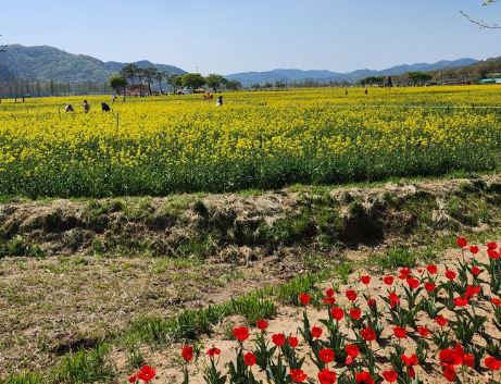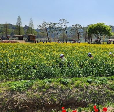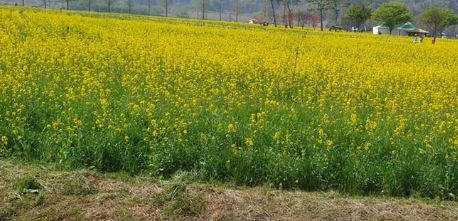 유채꽃은 파종 시기에 따라 조금씩 개화 시기가 다르기 때문에 4월 초부터 5월 초까지도 꽃을 즐길 수 있습니다.