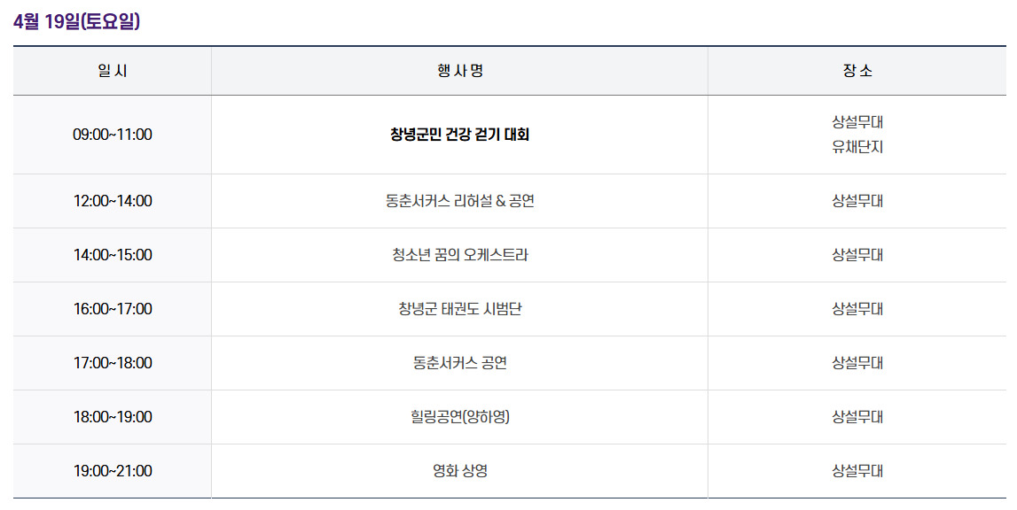 행사 일부는 변경될 수 있으니 최신 정보를 반드시 확인하세요.