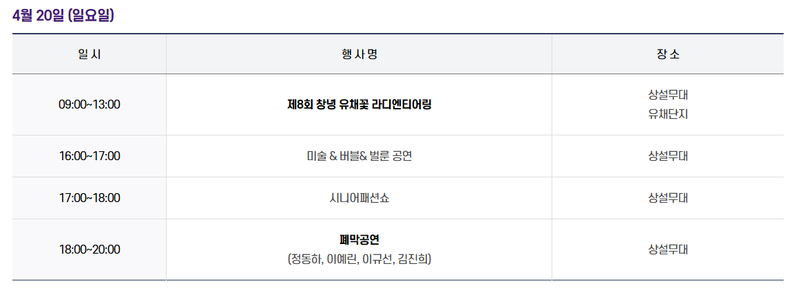 낙동강 유채꽃 축제 프로그램 주요 일정