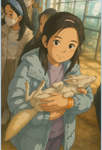“이 사진을 지브리풍 애니메이션 스타일로 변환해줘. 예를 들어 ‘이웃집 토토로’나 ‘센과 치히로’ 같은 분위기. 머리는 바람에 살짝 흩날리고, 눈은 반짝이는 느낌으로.”