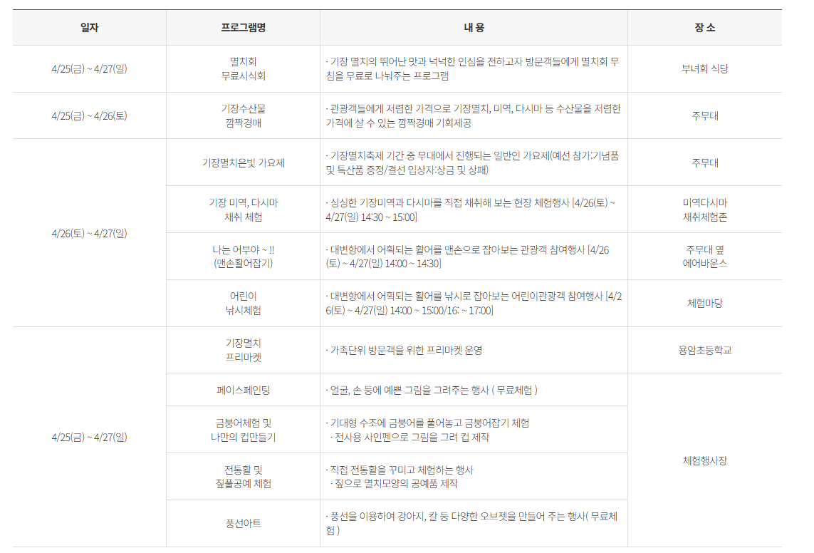 2025 기장 멸치 축제 체험일정