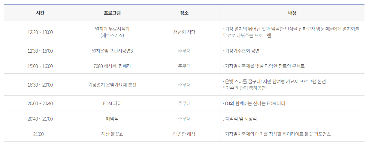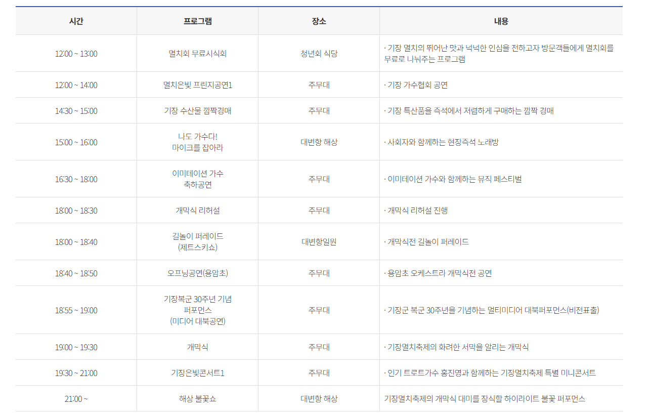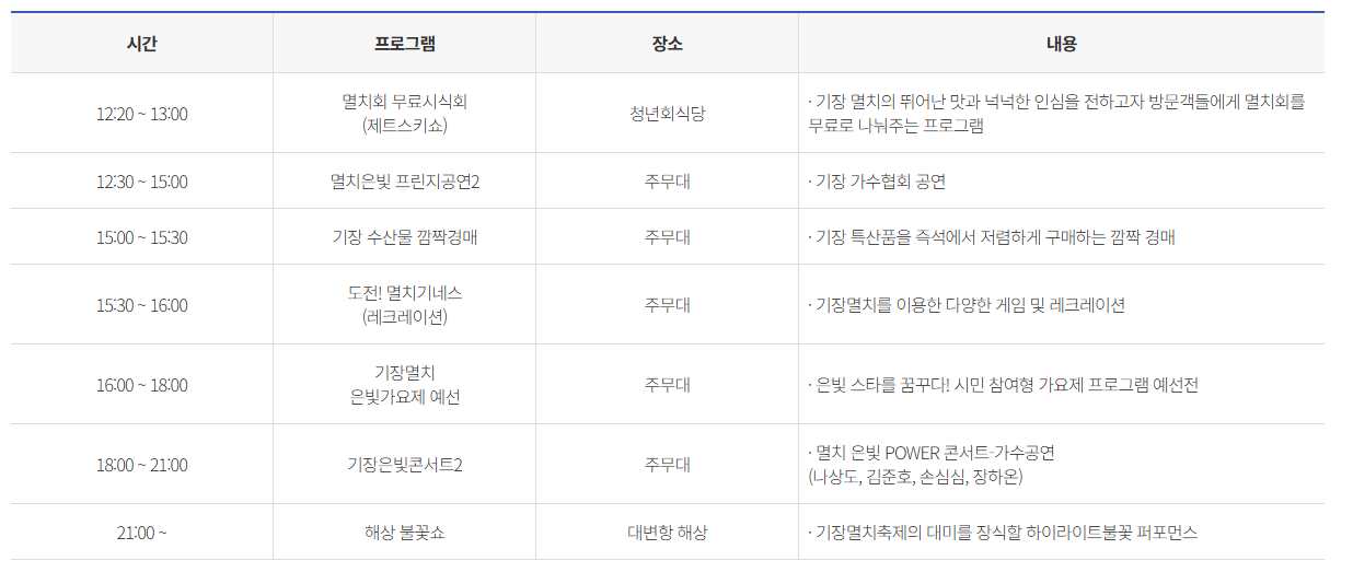 기장 멸치축제 주요 프로그램