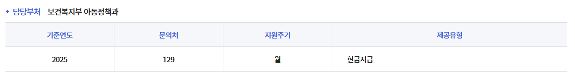 - 지급 기준 연령: 만 0세, 만 1세 아동