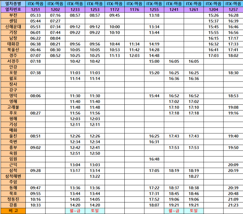 👉 예매 시 시간표를 꼭 확인하세요. 일부 간이역은 정차 생략될 수 있습니다.