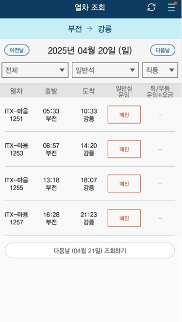 itx마음은 인기가 많아서 주말에는 표를 구하기가 쉽지 않은데요. 저도 평일의 첫시작 월요일에 예매하러 들어갔다가 깜짝 놀랐어요!