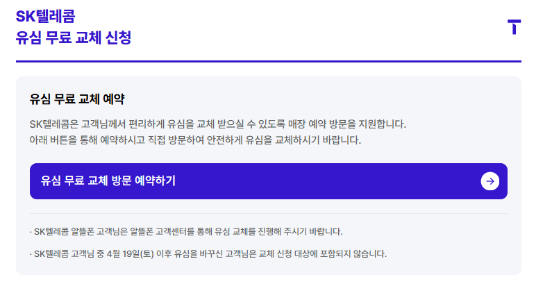 지정된 날짜에 신분증과 예약 문자를 지참하고 방문하면 새로운 유심으로 교체받을 수 있습니다. SKT는 매장 혼잡을 줄이기 위해 예약 이용을 적극 권장하고 있습니다.